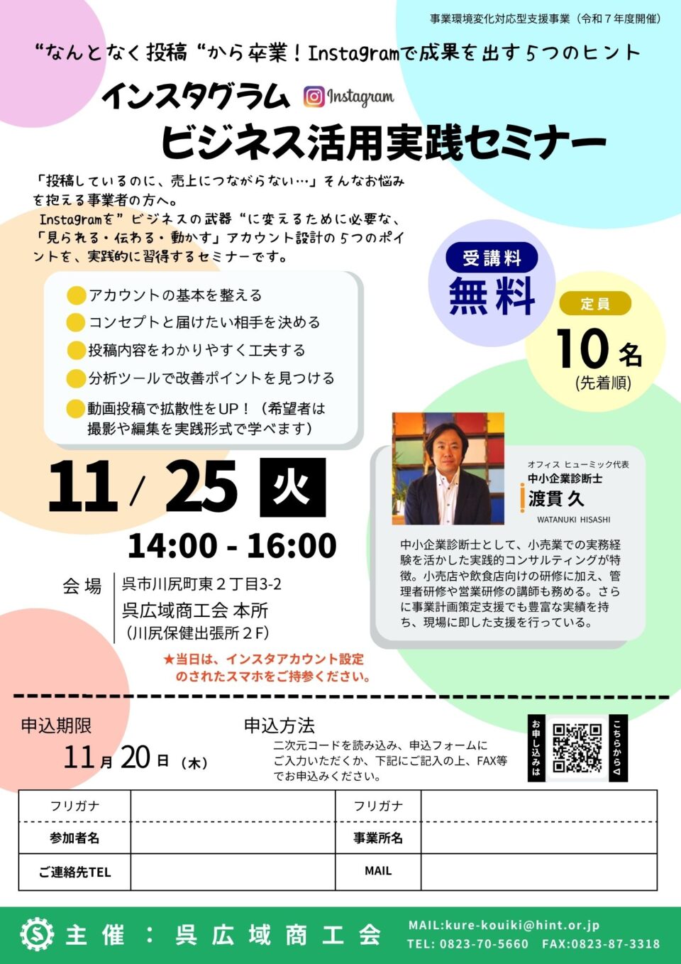 インスタグラム ビジネス活用実践セミナー(無料)【事業環境変化対応型支援事業】